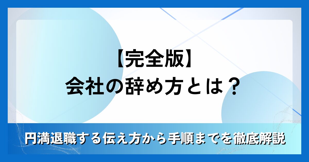 【完全版】会社の辞め方とは?円満退職する伝え方から手順までを徹底解説