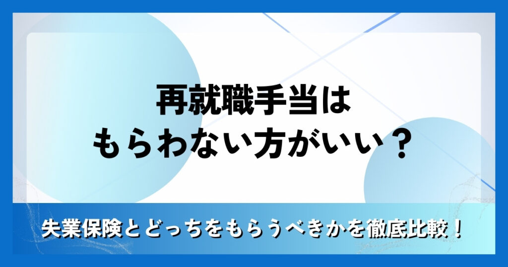 再就職手当はもらわない方がいい?失業保険とどっちをもらうべきかを徹底比較!
