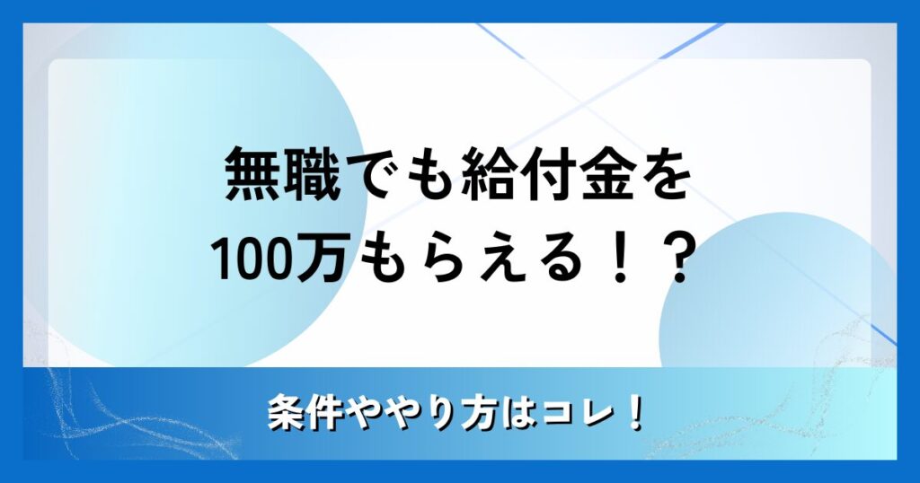 無職でも給付金を100万もらえる!?条件ややり方はコレ!