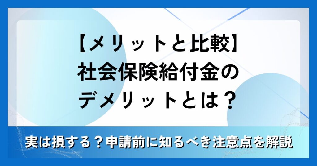 【メリットと比較】社会保険給付金のデメリットとは?実は損する?申請前に知るべき注意点を解説