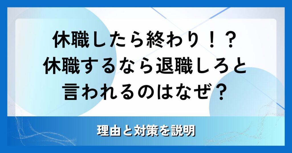 休職したら終わり!?休職するなら退職しろと言われるのはなぜ?理由と対策を説明