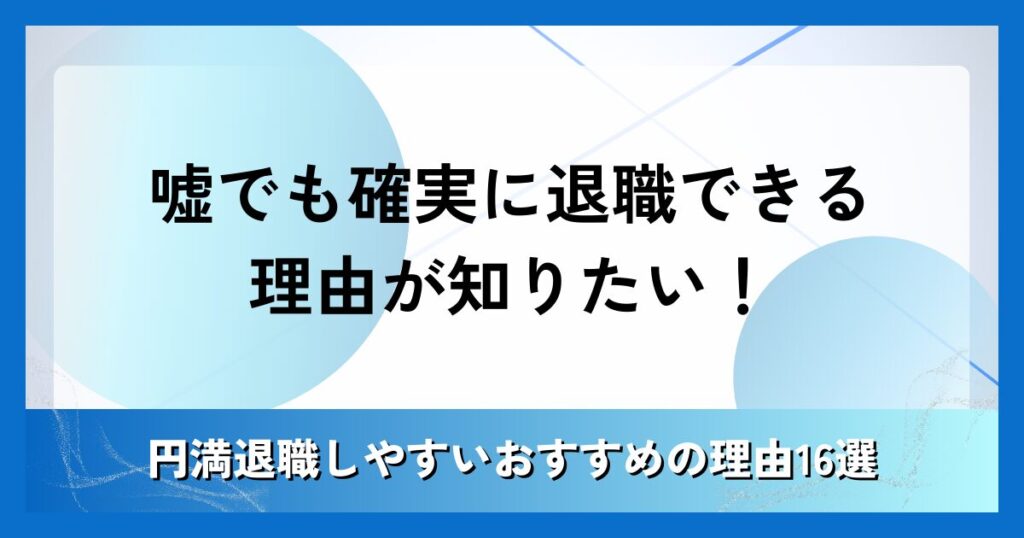嘘でも確実に退職できる理由が知りたい!円満退職しやすいおすすめの理由16選