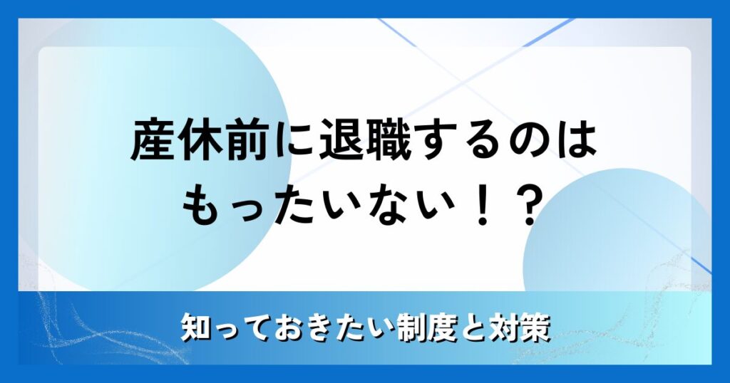 産休前に退職するのはもったいない!?知っておきたい制度と対策